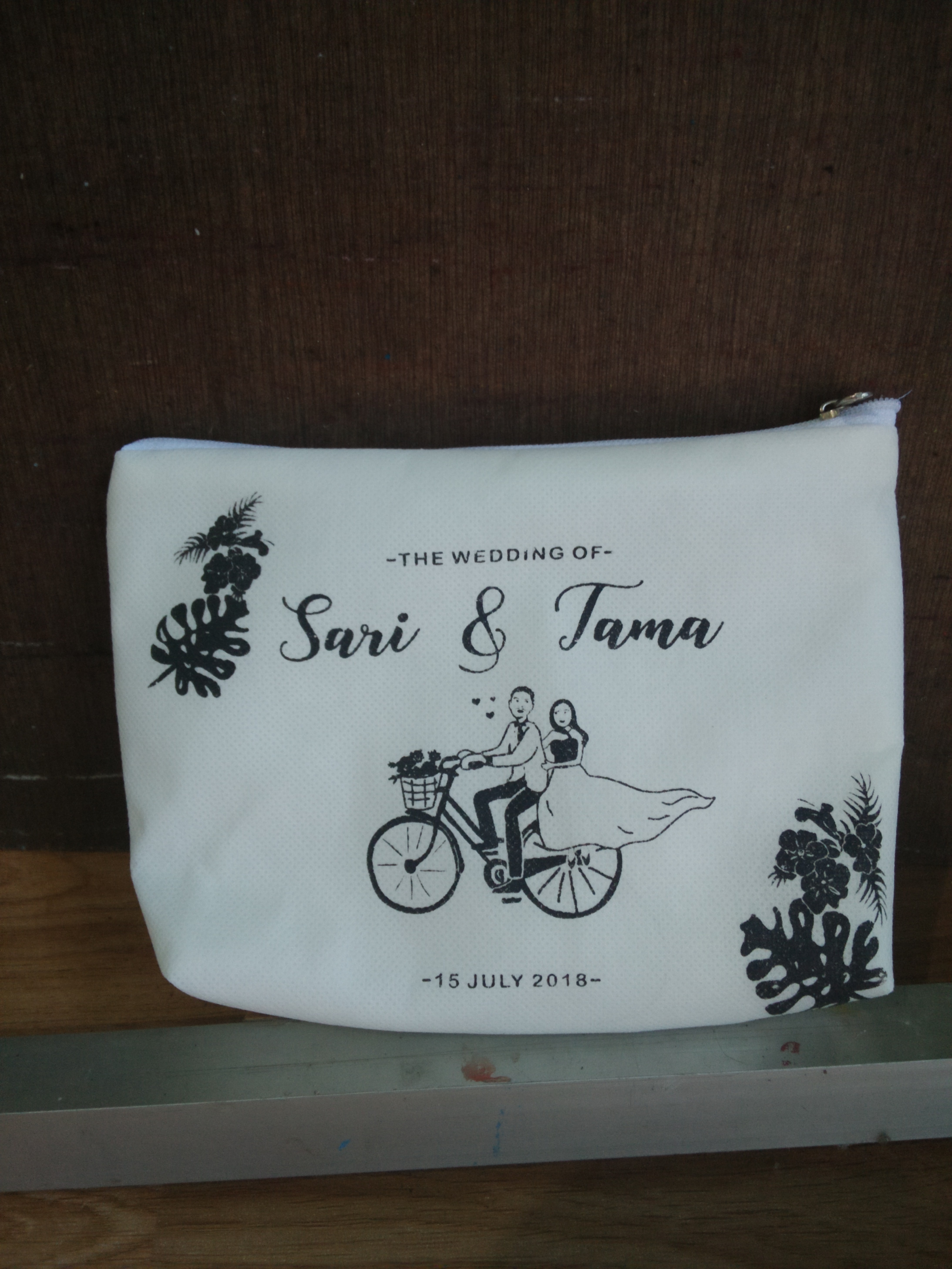 Pouch souvenir pernikahan ini dibuat dengan ukuran 15cm x 10cm dengan bahan furing atau kain spunbond 100gsm bisa menjadi pilihan untuk acara atau hajatan anda. Pouch souvenir pernikahan ini di sablon dengan menggunakan tinta hitam satu warna. Dengan desain yang apik dan menarik membuat poch souvenir ini lebih eksklusif. Contac Person kami di 085110330868